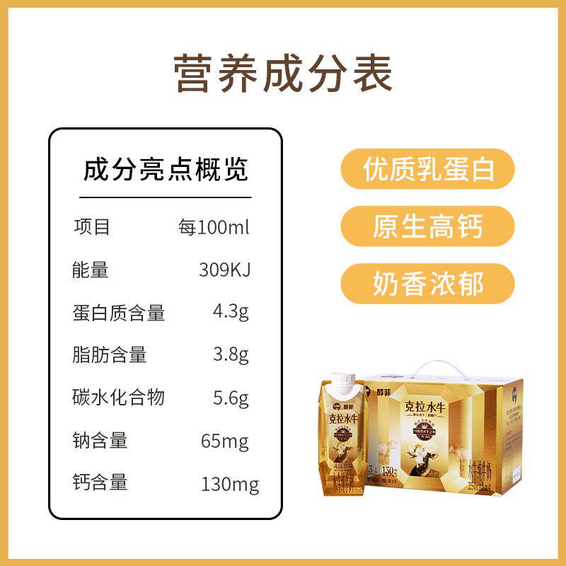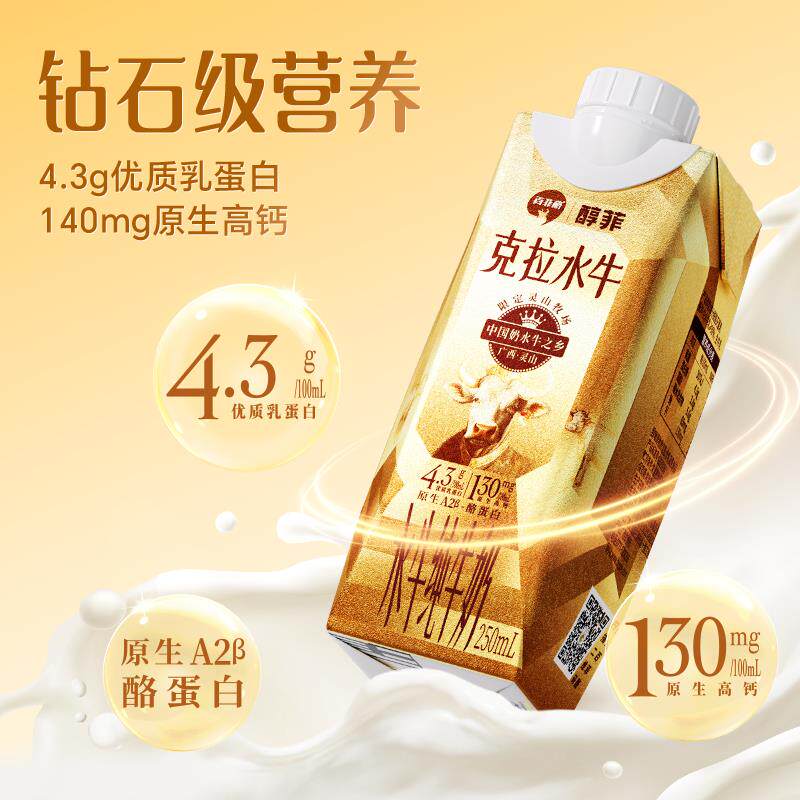 百菲酪醇菲水牛纯牛奶金装版4.3g蛋白A2β-酪蛋白早餐营养奶广西