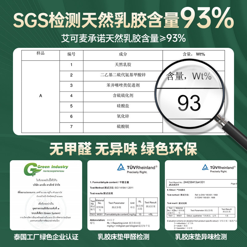艾可麦泰国进口天然橡胶床垫5cm厚原装原产硅胶10乳胶垫床垫家用