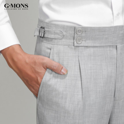 那不勒斯西裤男士九分裤浅灰色直筒垂感商务休闲高腰裤子修身四季
