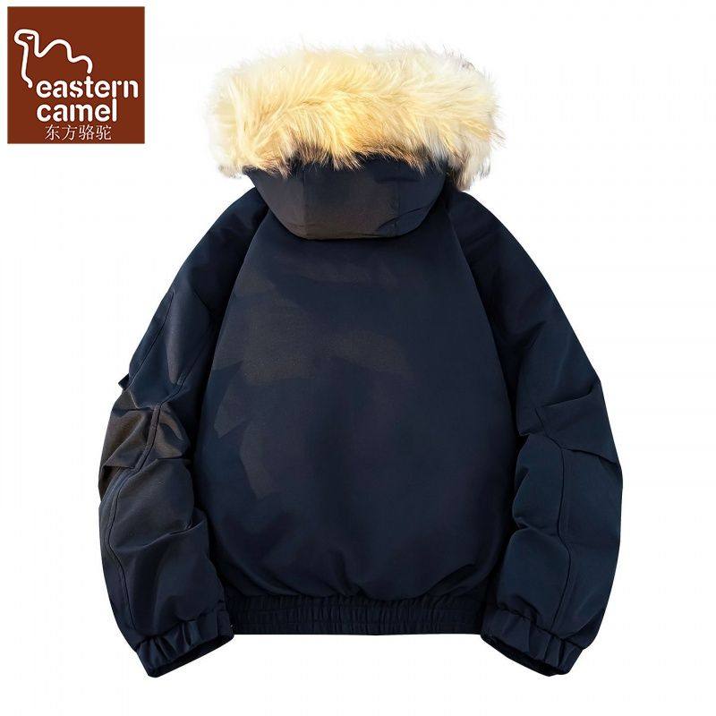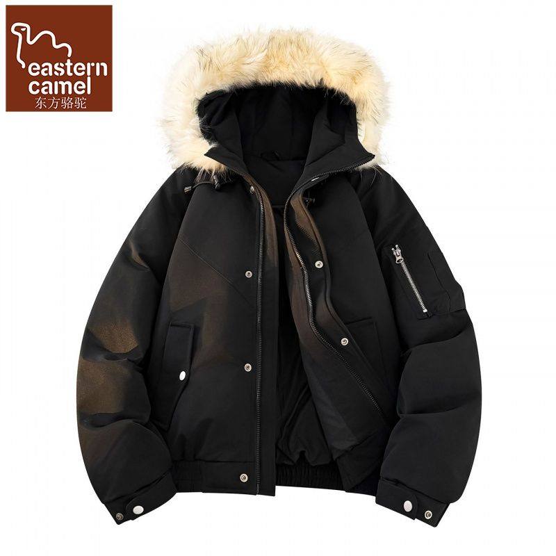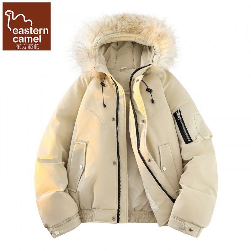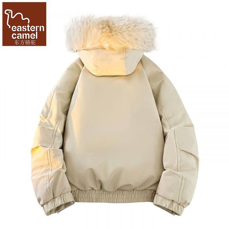 东方骆驼冬季新羽绒服男女连帽工装派克服大毛领百搭加厚情侣外套