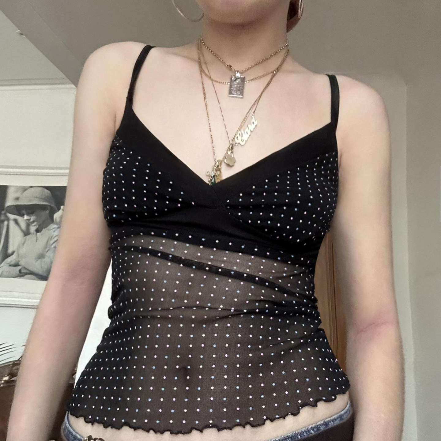 ROCKMORE【百搭基础】辣妹性感V领黑色波点吊带修身显瘦打底背心