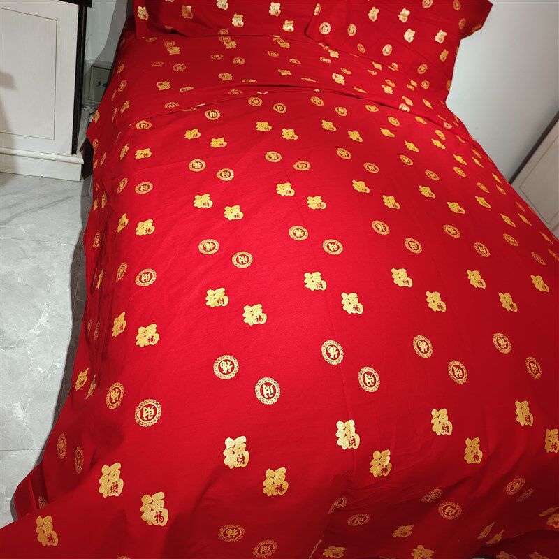 百福字百财布g料全棉本命年宝宝百福包被套大红床单转运四件套