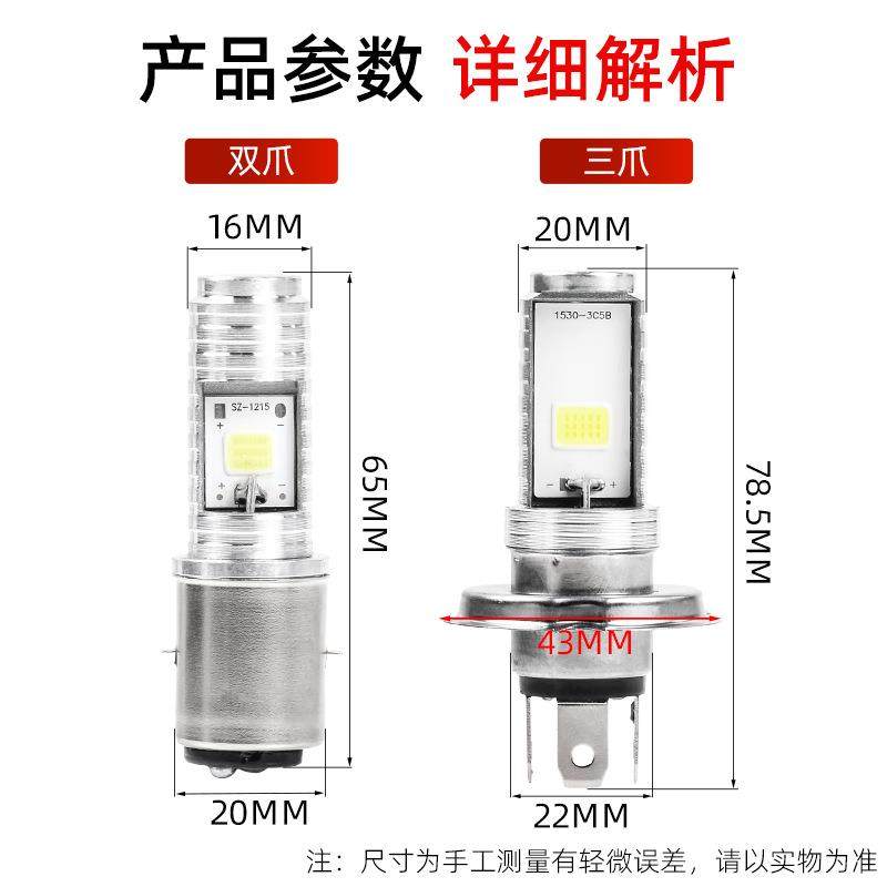 踏板电动摩托车led大灯泡12-80v超亮电瓶车双爪内置前灯泡改装灯