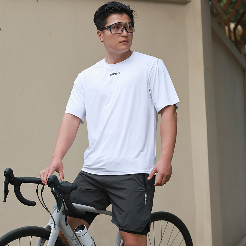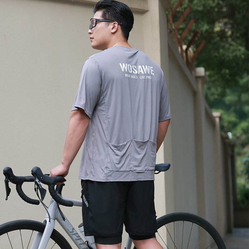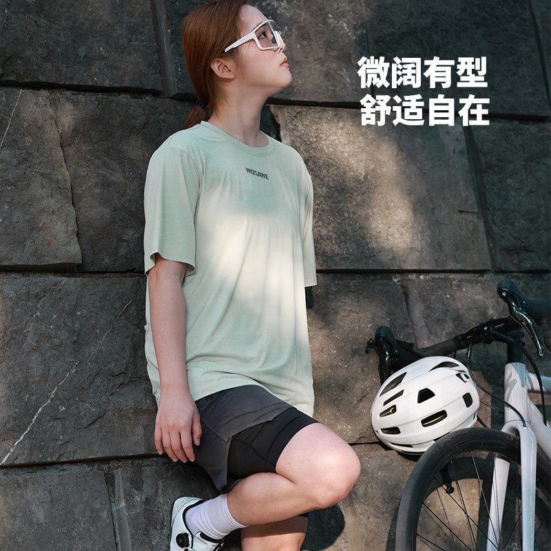沃萨维新款宽松t恤骑行服公路自行车跑步休闲速干短袖山地速降服