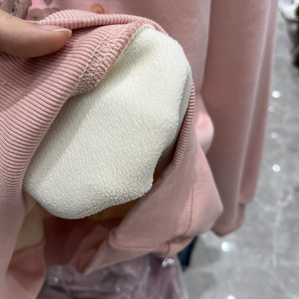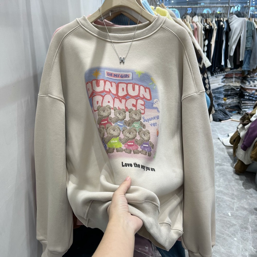 小熊加绒圆领卫衣女2024新款韩版