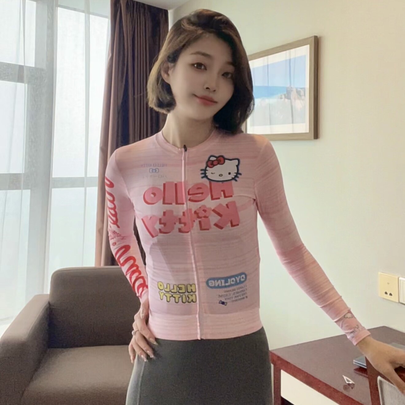 蓝粉KT织带骑行服薄款与抓绒款长袖自行车服