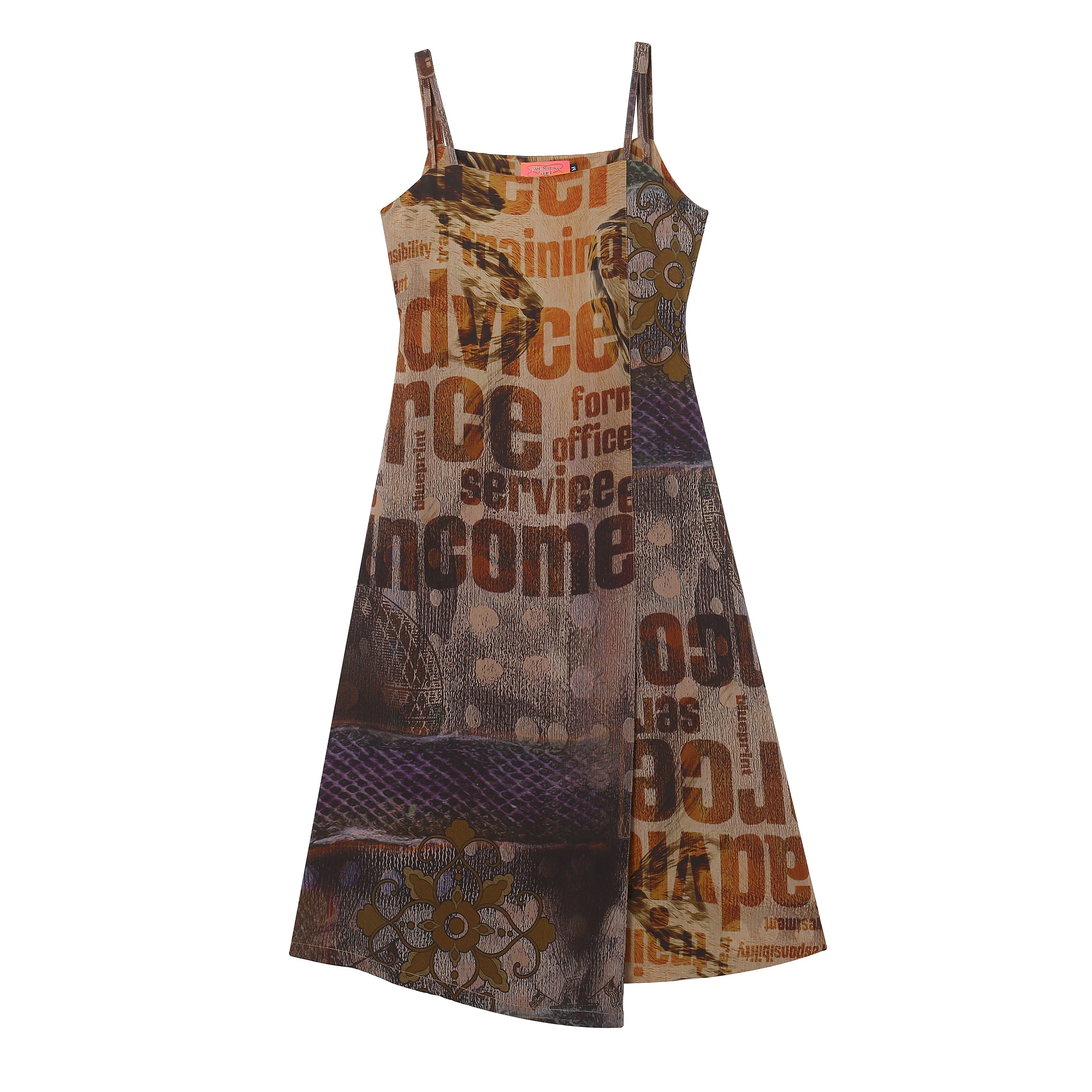复古A字涂鸦开衩吊带无袖连衣裙