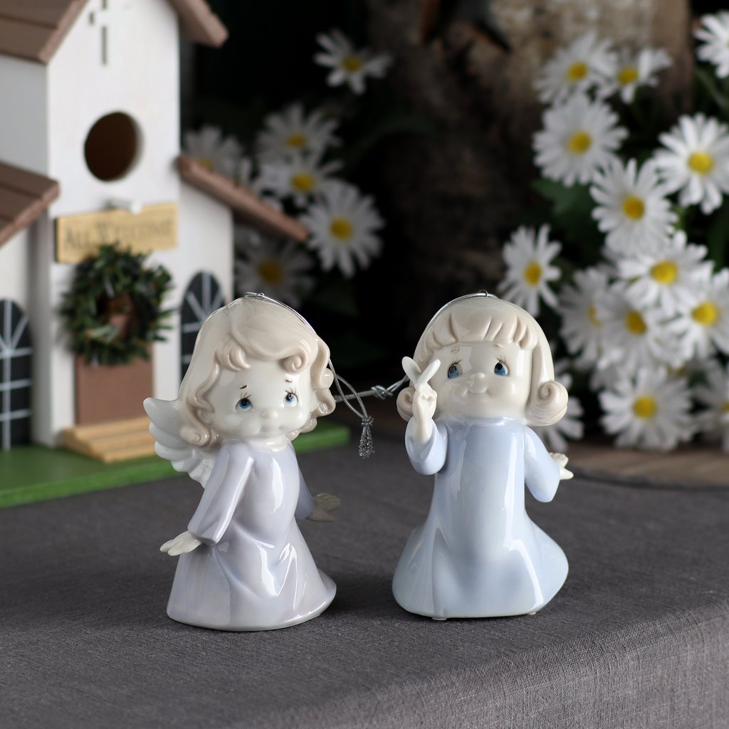 百亩外贸欧式复古可爱俏皮男孩女孩高温陶瓷天使娃娃装饰摆件礼物