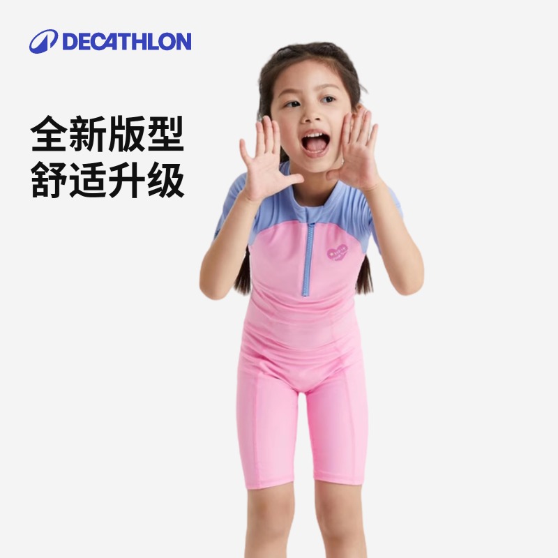 迪卡侬儿童泳衣女孩游泳衣青少年女童中大童防晒泳装连体温泉IVA1