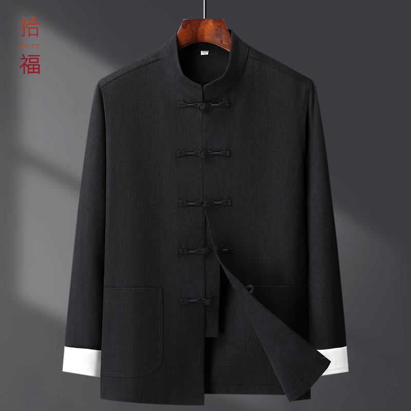 中老年唐装男中国风男装春秋款复古喜庆套装日常爷爷送礼中式上衣