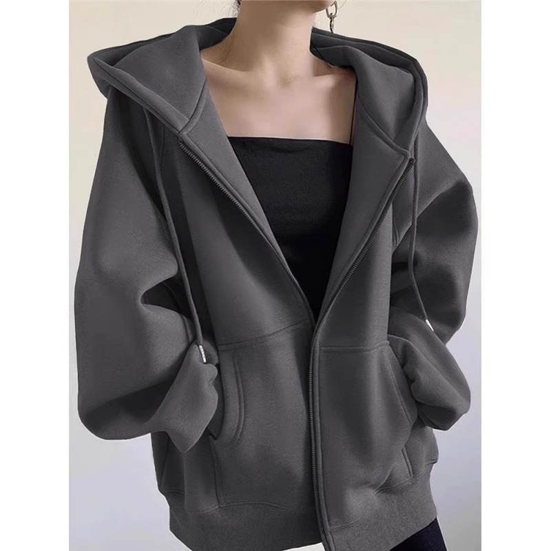 大牌专柜藏蓝色即墨纯棉卫衣女秋冬季加绒加厚宽松开衫连帽棒球服