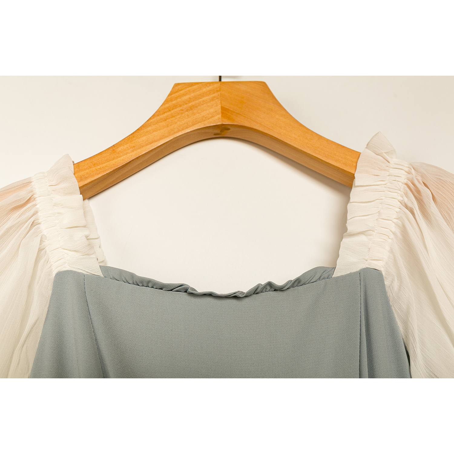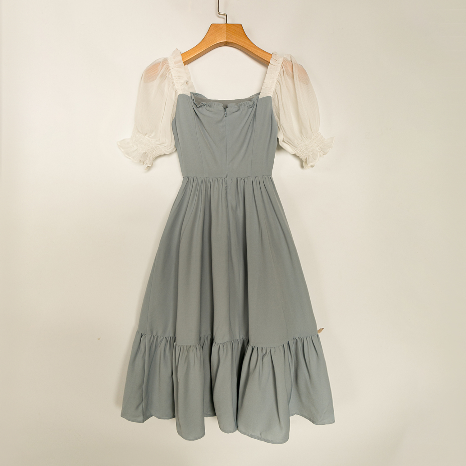 夏季外贸韩版新款 A版显瘦百搭 二色拼接设计 方领短袖连衣裙