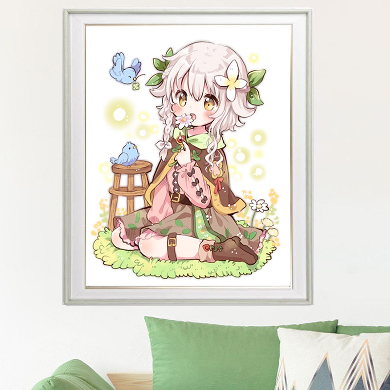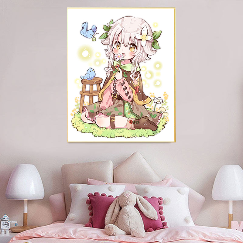 可爱女孩钻石画2025新款小幅简单手工儿童卧室5d点贴钻十字绣满钻