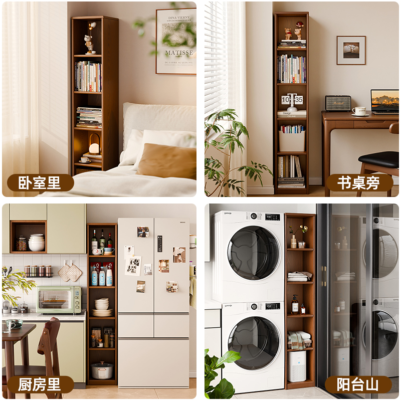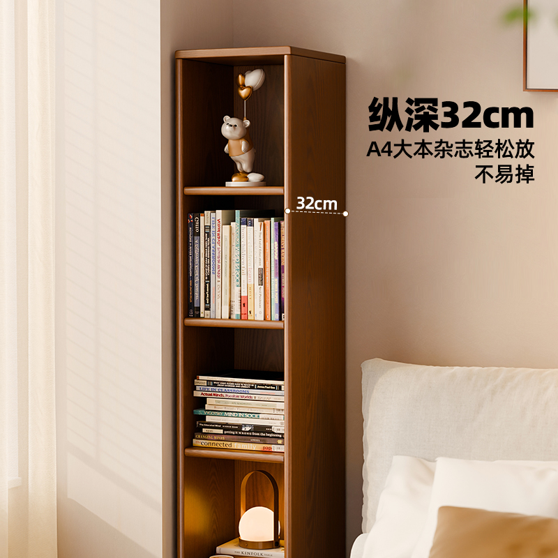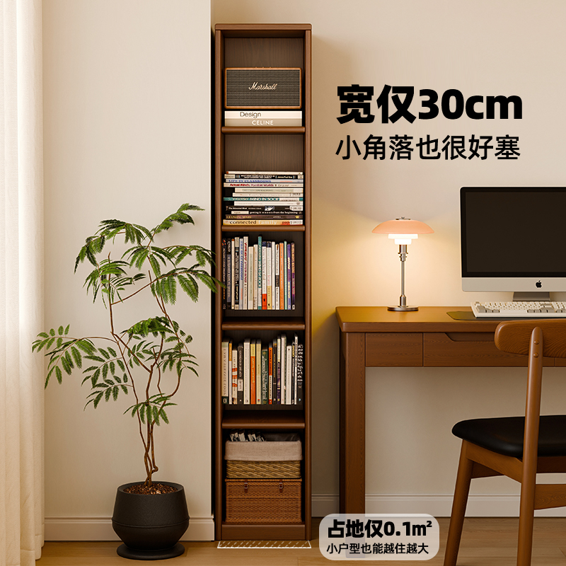 实木书架落地置物架靠墙高窄柜