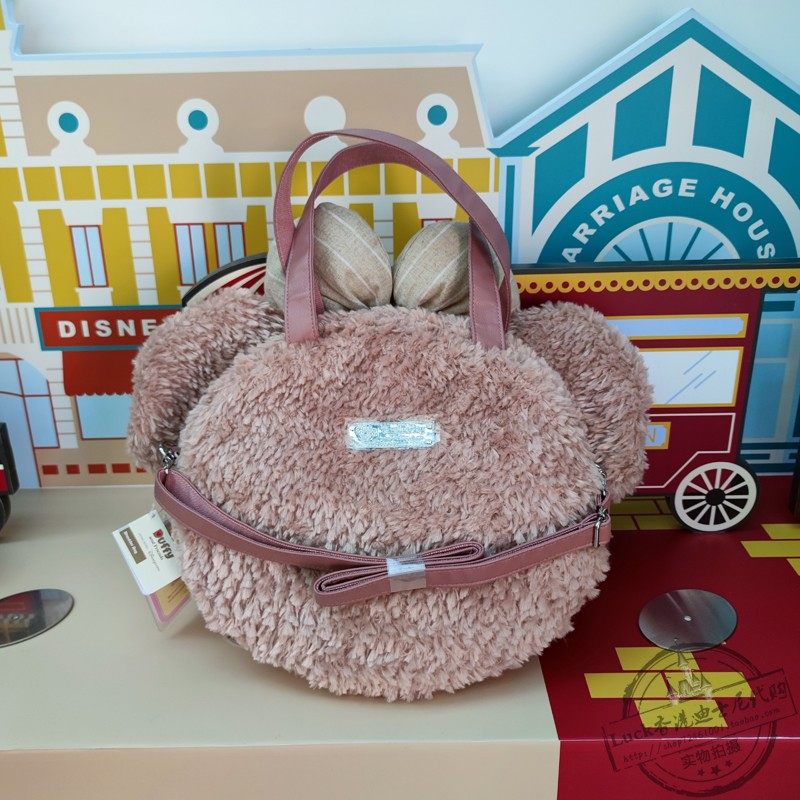 香港迪士尼达菲雪莉玫玫大号脸面包卡通可爱毛绒手提斜挎单肩背包