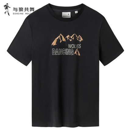 【商场款】与狼共舞印花修身圆领短袖T恤男2025夏季款抗皱透气短t
