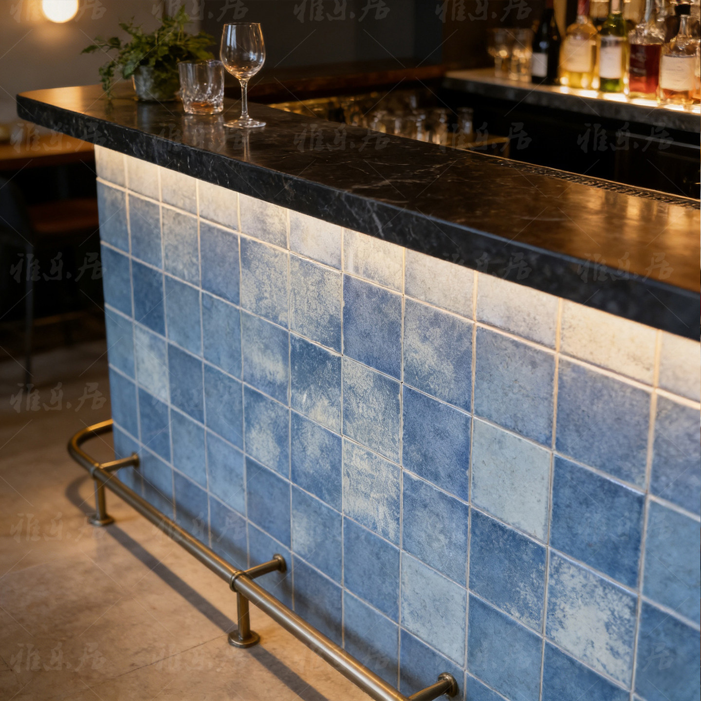 雅乐居复古雪花蓝手工砖酒吧吧台厨房卫生间庭院凳子桌面100瓷砖