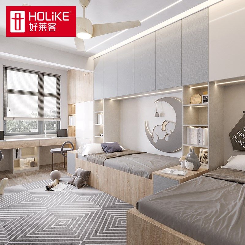 好莱客双胞胎儿童房空间二胎房间设计儿童拼接床书桌定制男孩女孩