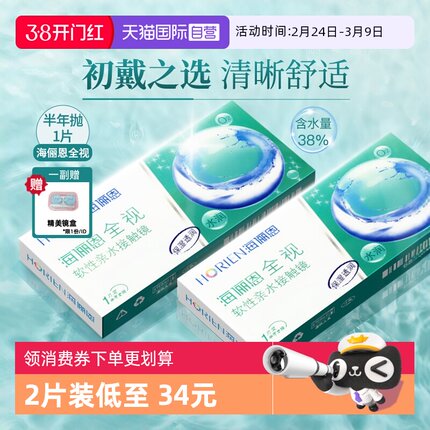 【自营】海俪恩半年抛1片全视隐形近视眼镜透明片正品大小直径
