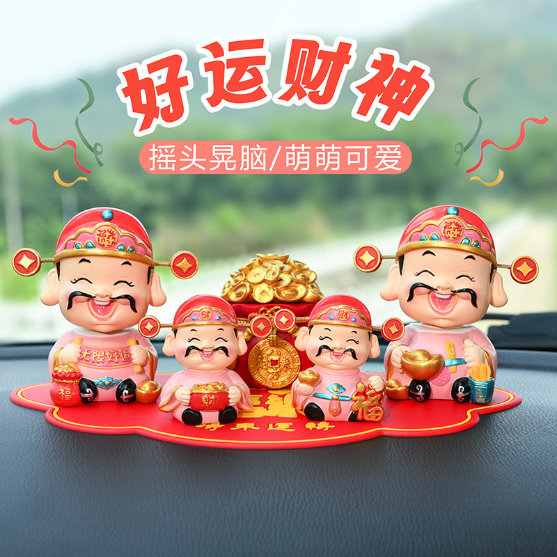 财神爷汽车摆件摇头好运粉车内中控台装饰新年喜庆仪表台摆设卡通
