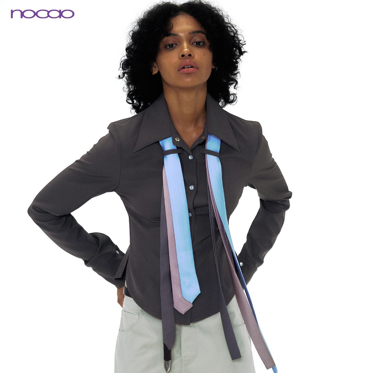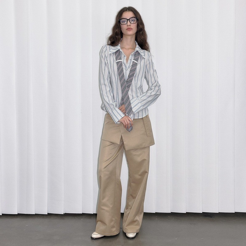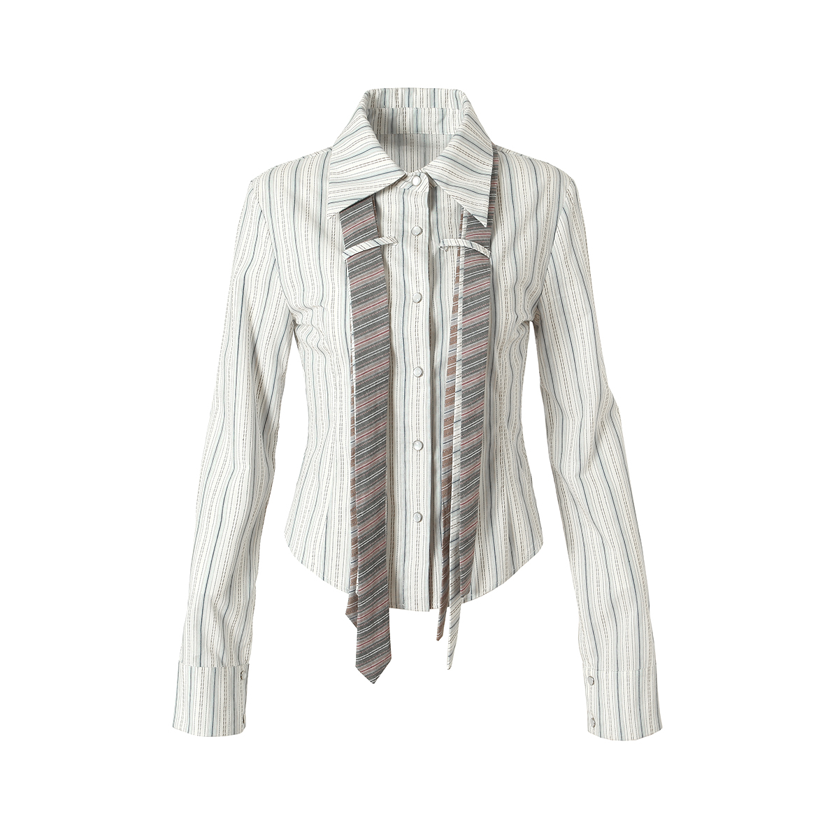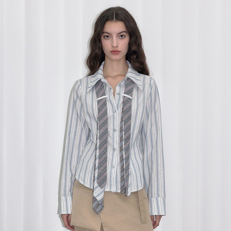 【多领带】BiLLconch 原创条纹复古修身收腰棉衬衫女衬衣春夏上衣