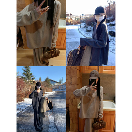 大小姐77 本期必收!14针28支100绵羊毛慵懒松弛V领针织衫阔腿裤