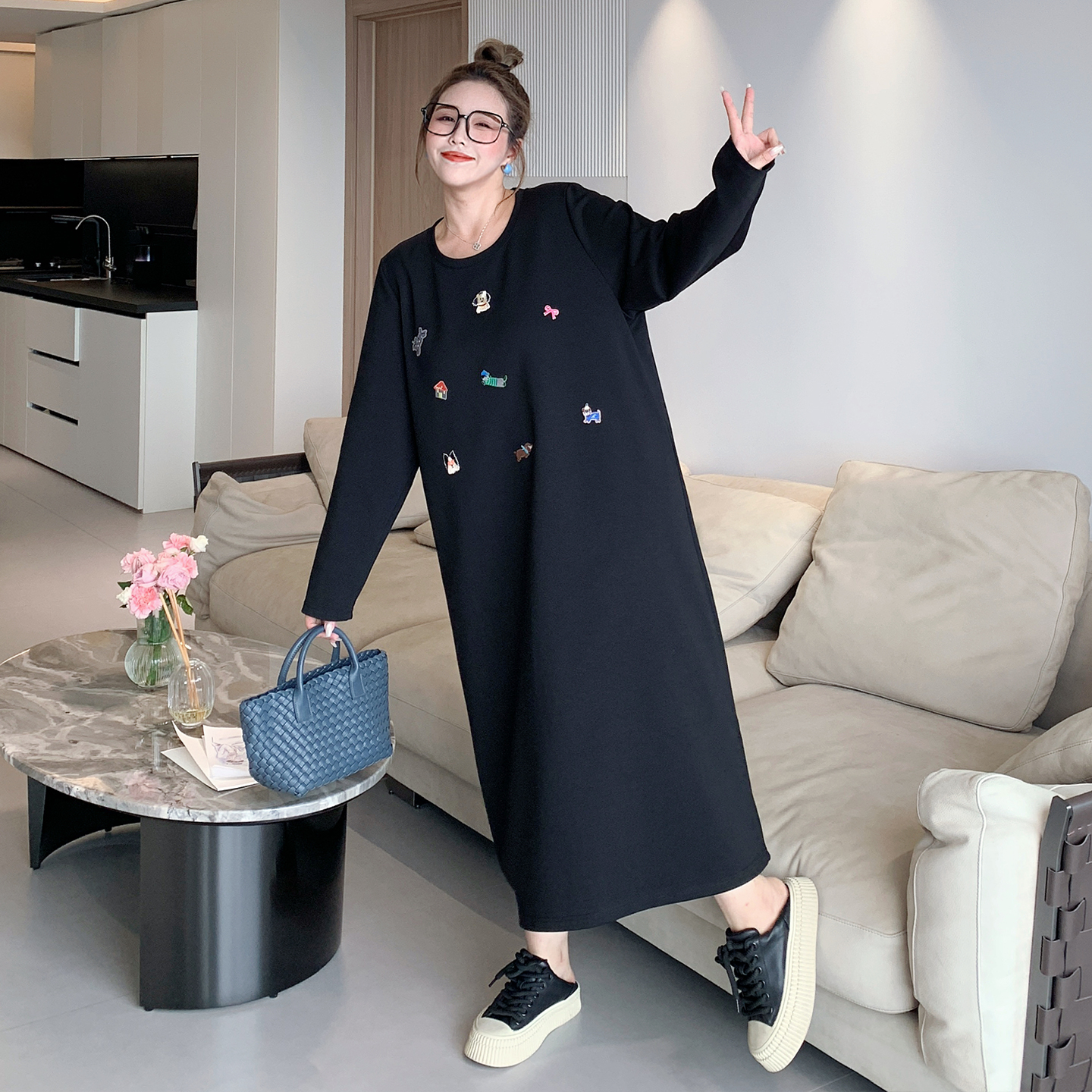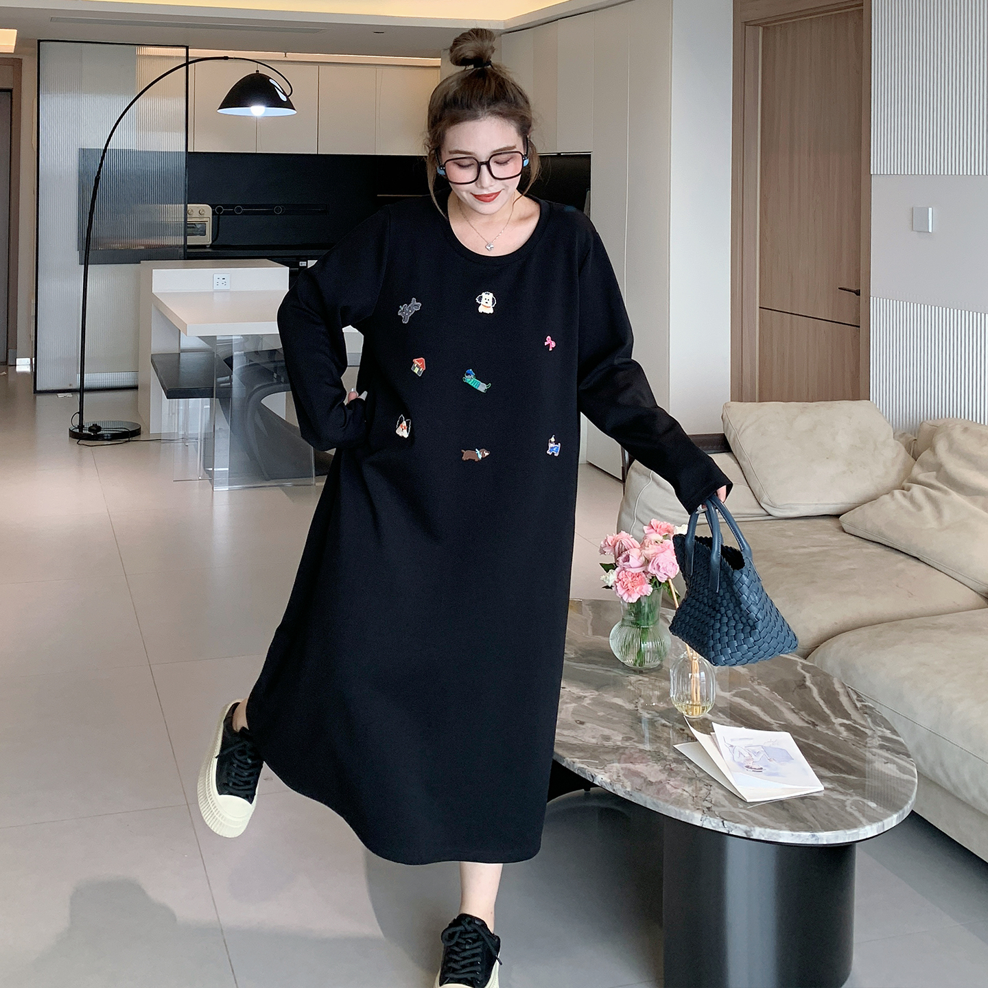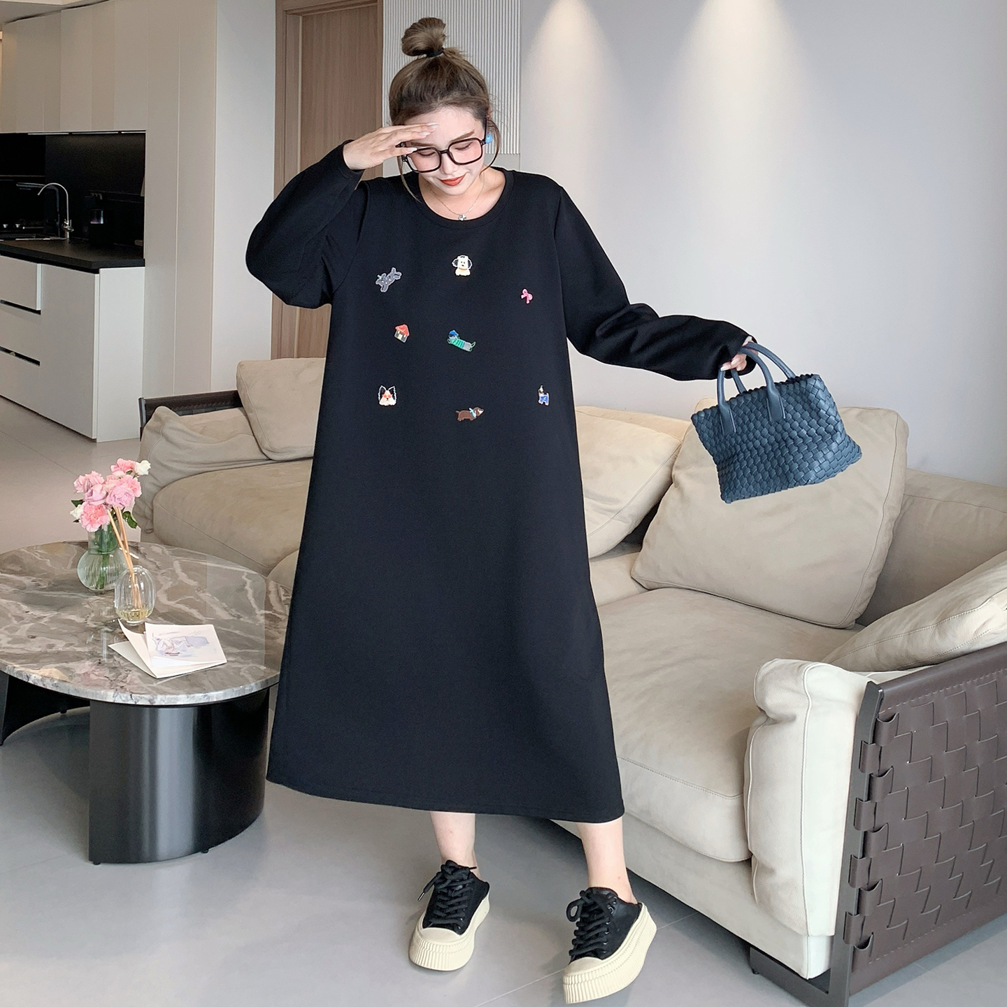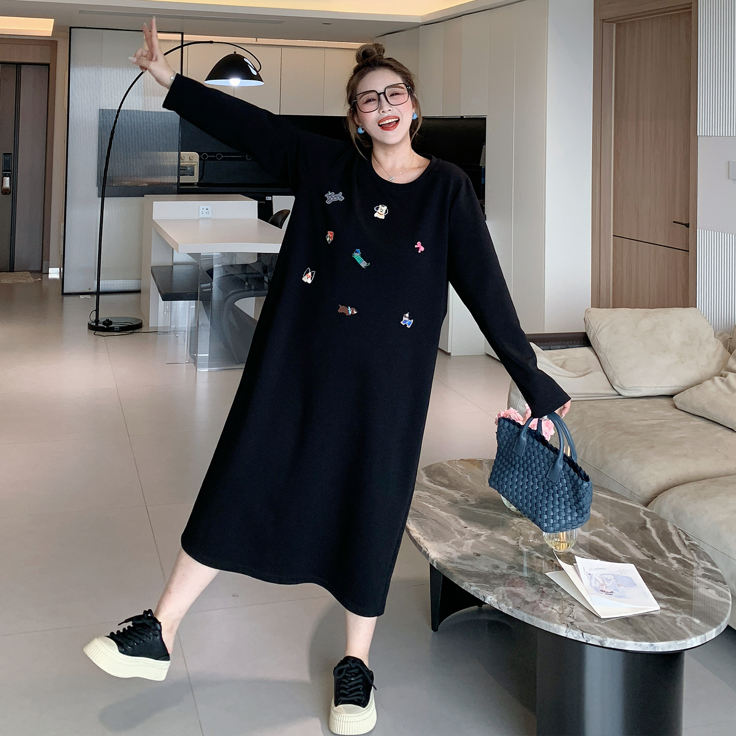 媛子家大码秋季新款胖mm宽松时尚气质长袖T恤裙显瘦韩版连衣裙女