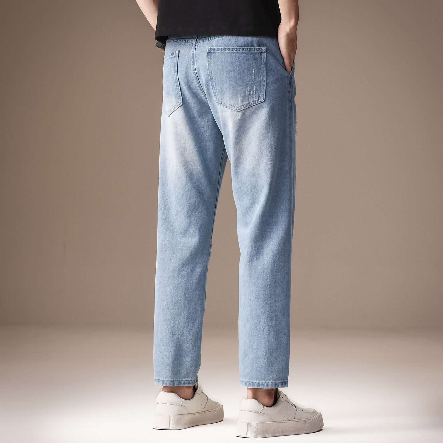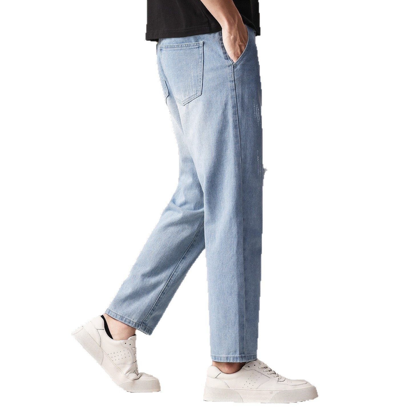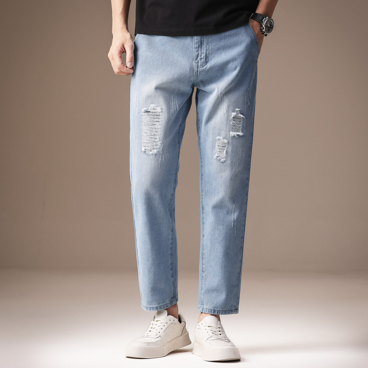 高端破洞九分男士牛仔裤2025夏季薄款潮牌宽松直筒休闲潮流裤子男