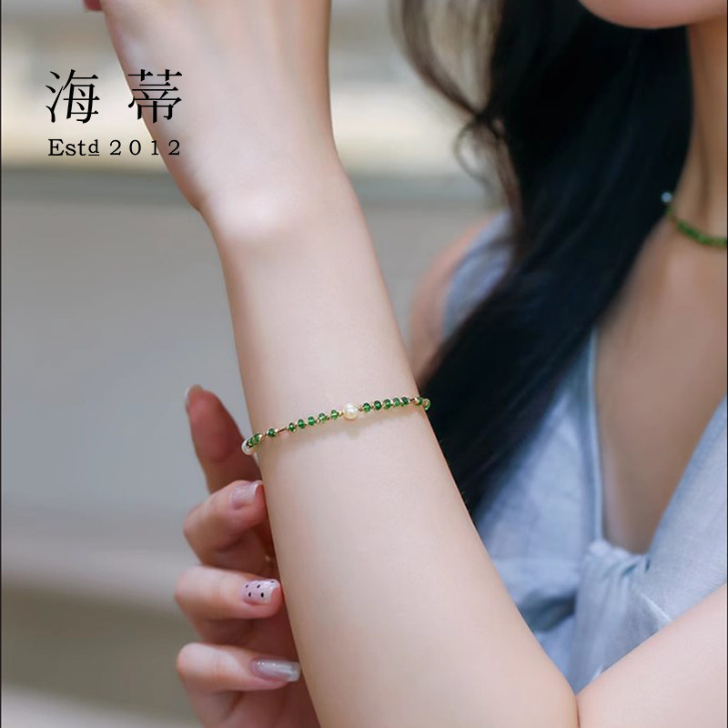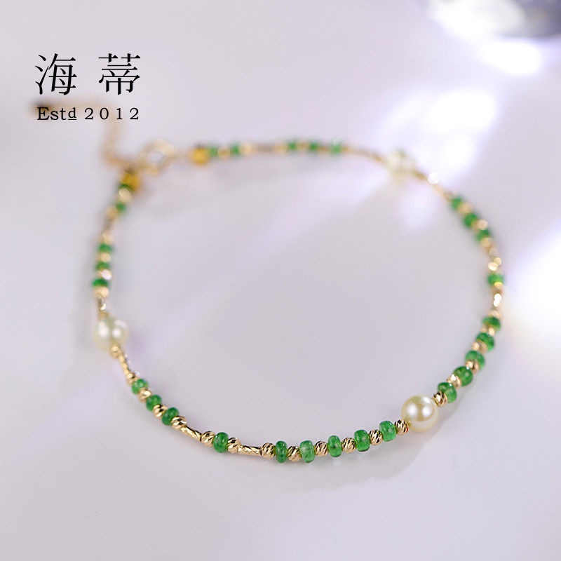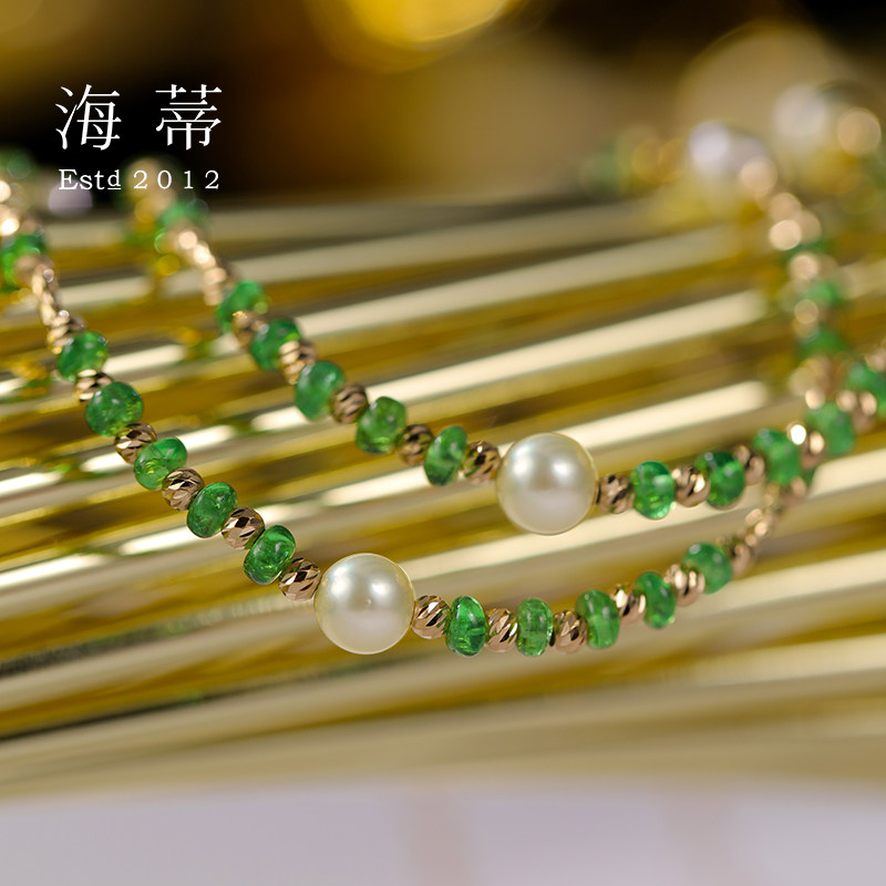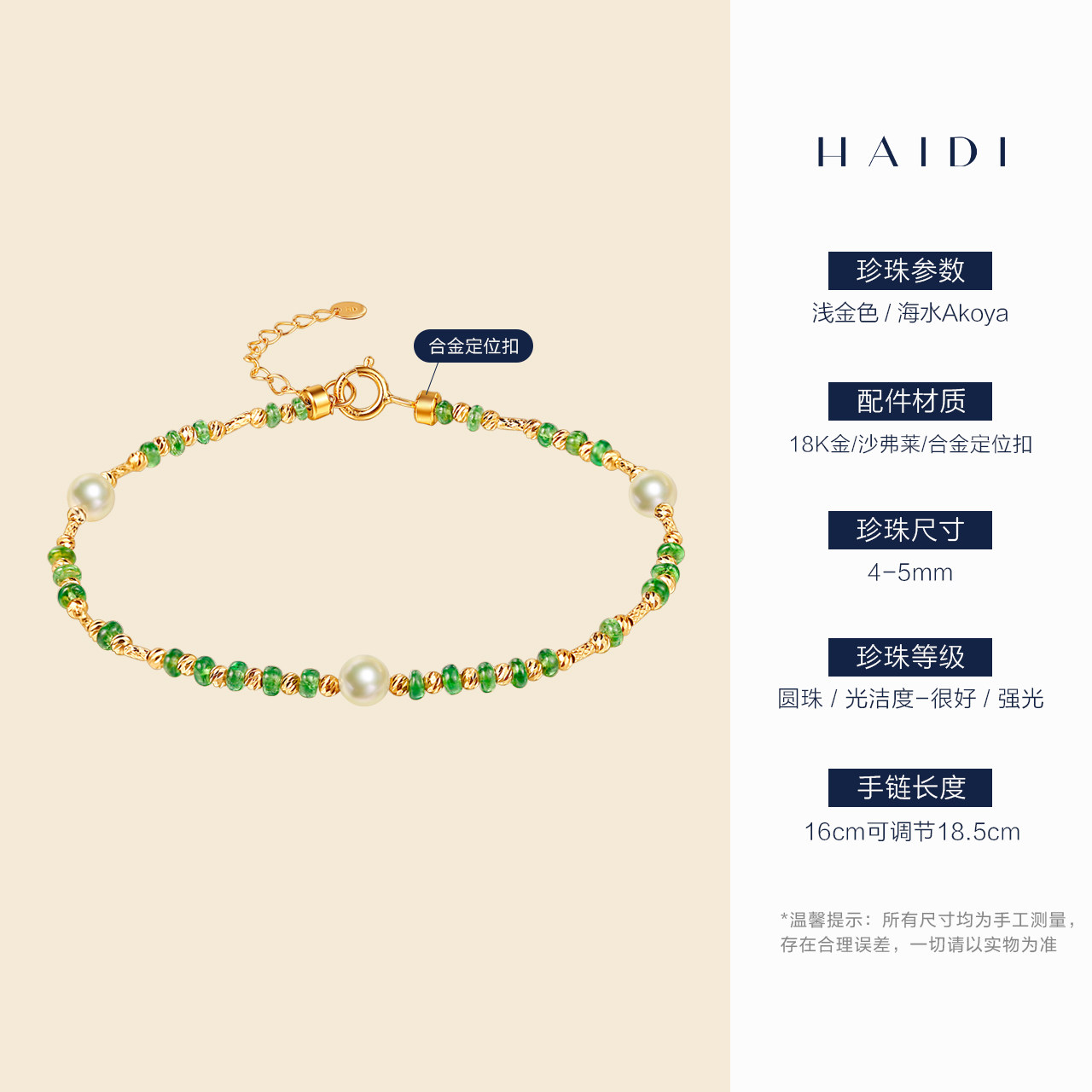 海蒂珠宝 金纱绿影 4-5mm海水Akoya沙弗莱珍珠手链 18k金手饰礼物