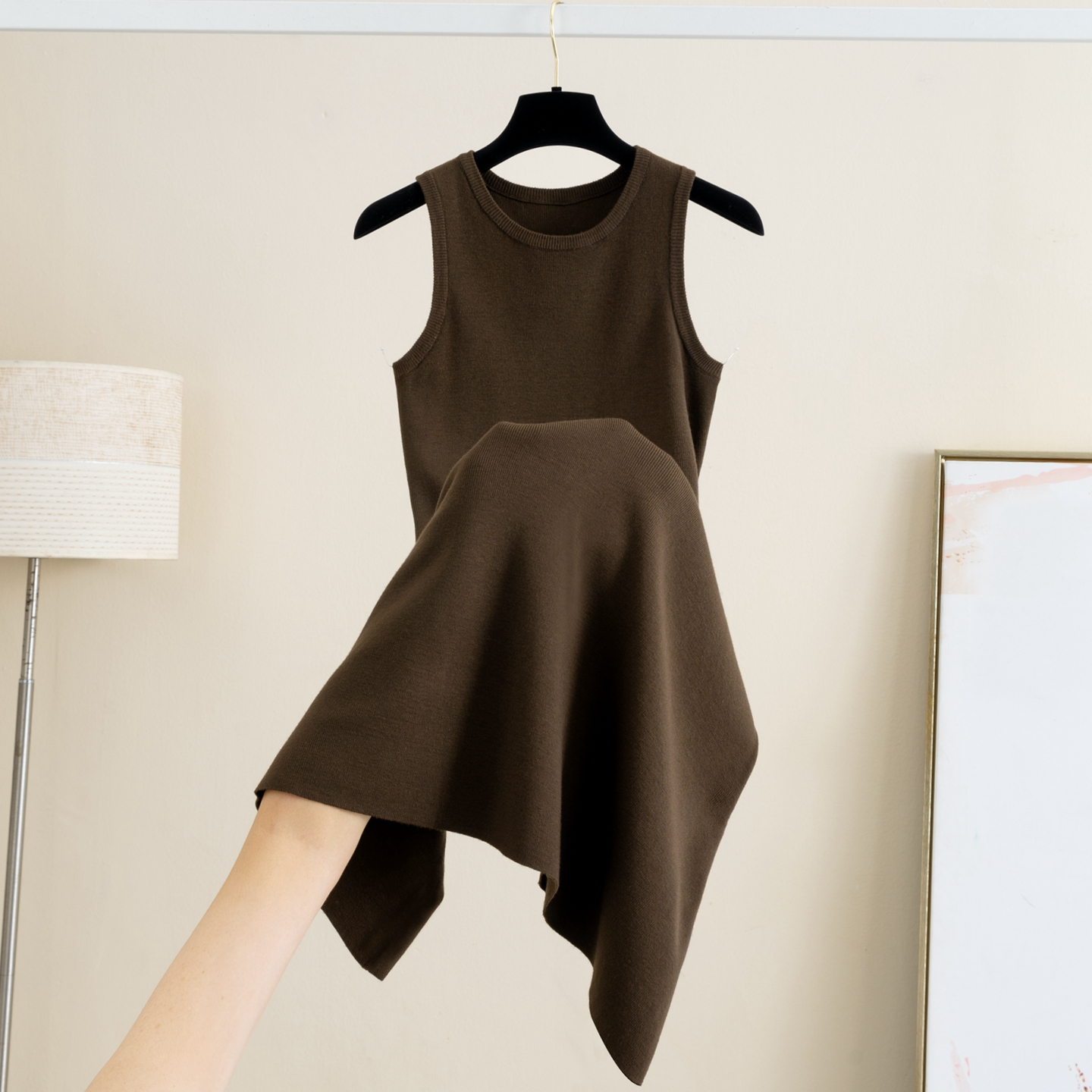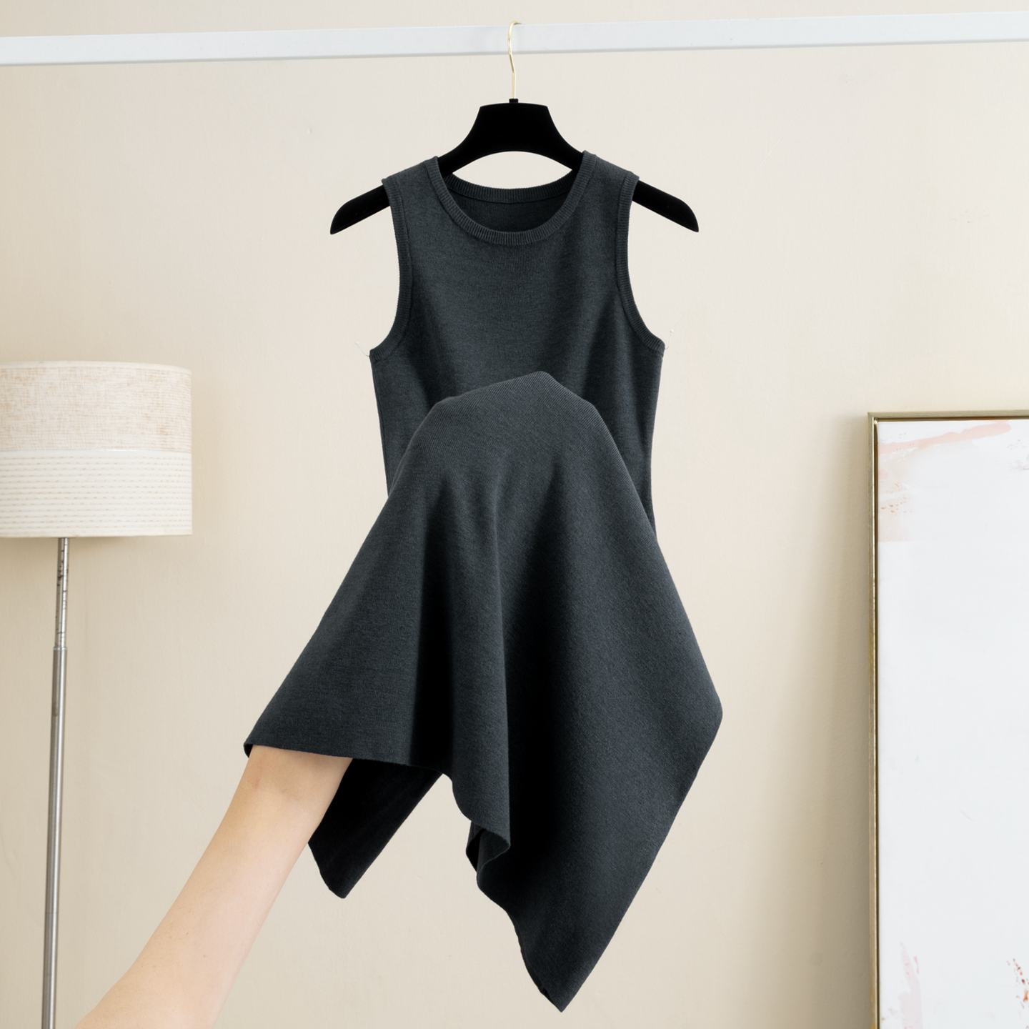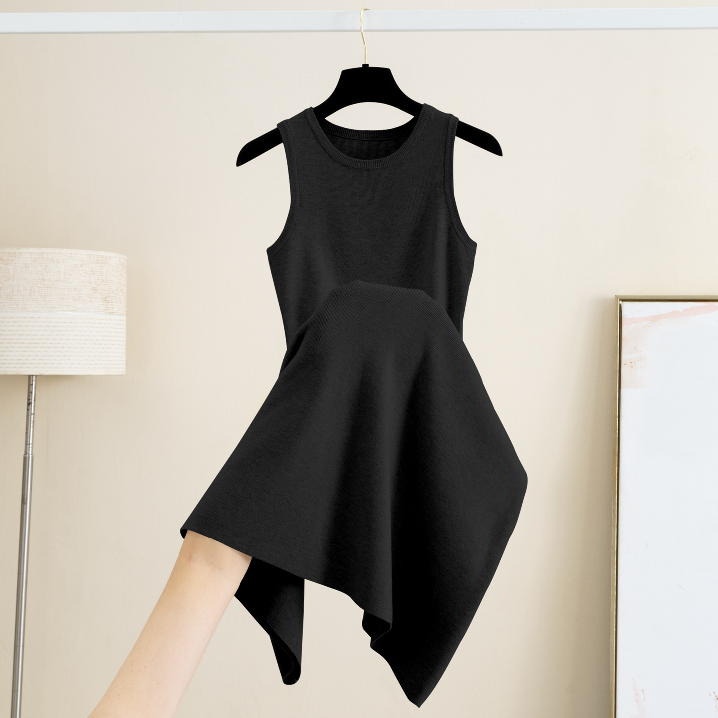 无袖半高圆领针织背心连衣裙女秋