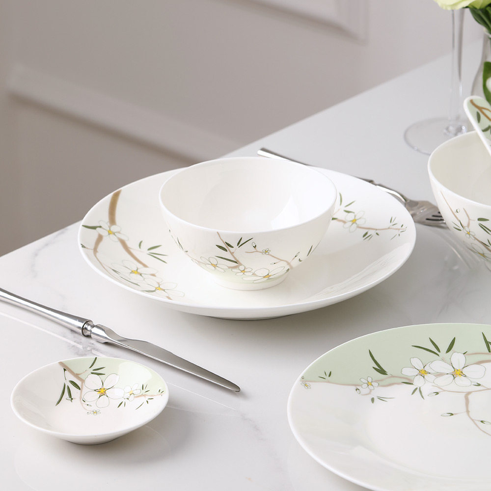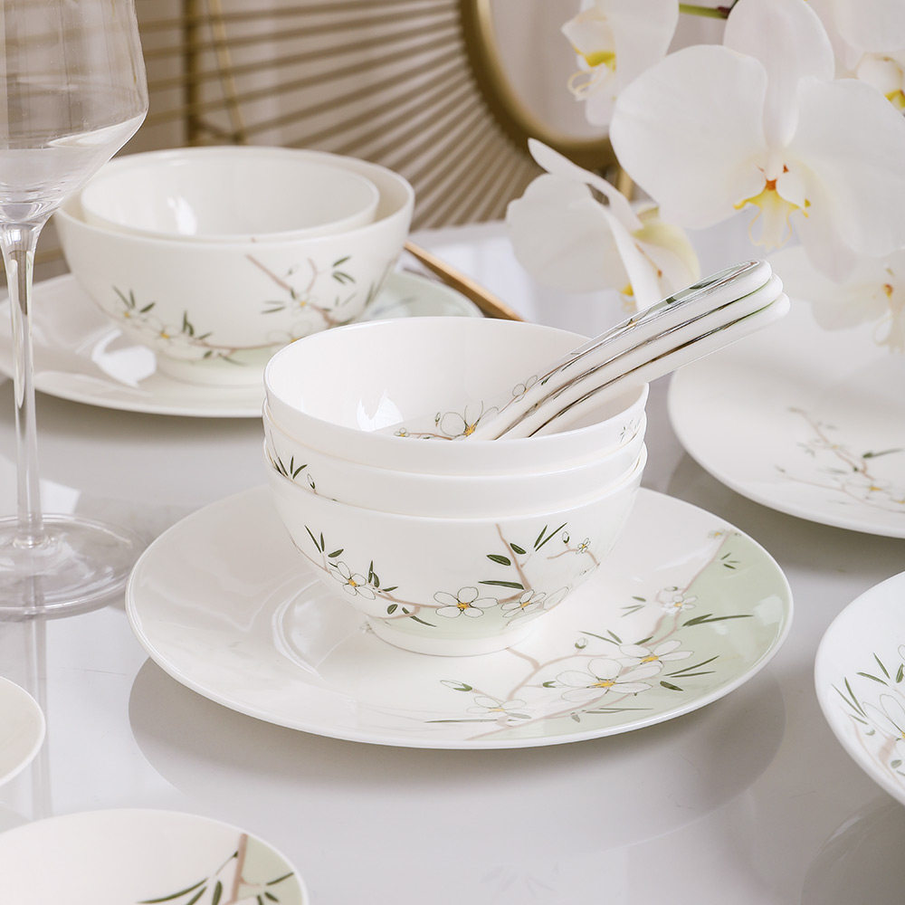 松发瓷器中式骨瓷釉中彩安全健康家用送礼碗碟套装礼盒装餐具套装
