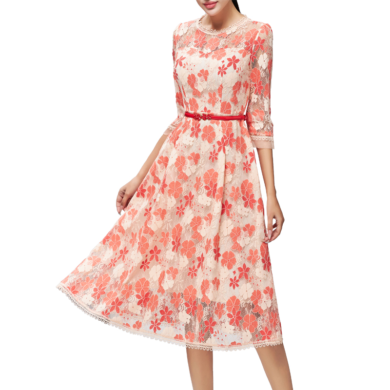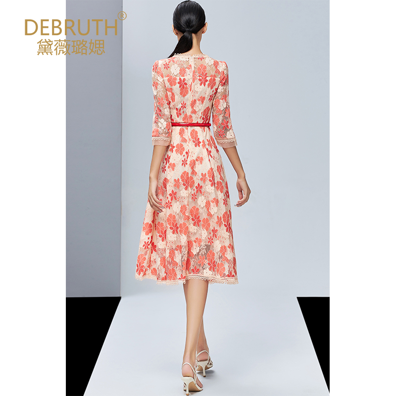 黛薇璐媤橘色花边蕾丝公主连衣裙女2025春装新款法式气质收腰A裙