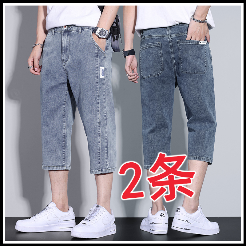 夏季薄款男士牛仔短裤男弹力休闲牛仔裤子男宽松直筒马裤七分中裤