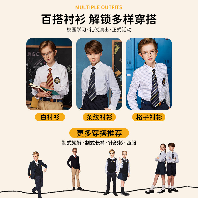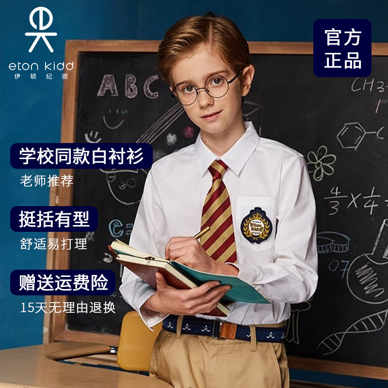 伊顿纪德校服衬衫男童长袖衬衣儿童装中小学生校服白色衬衣10C150
