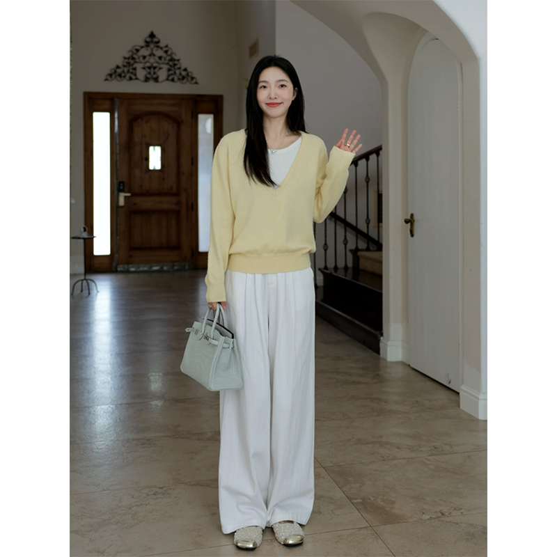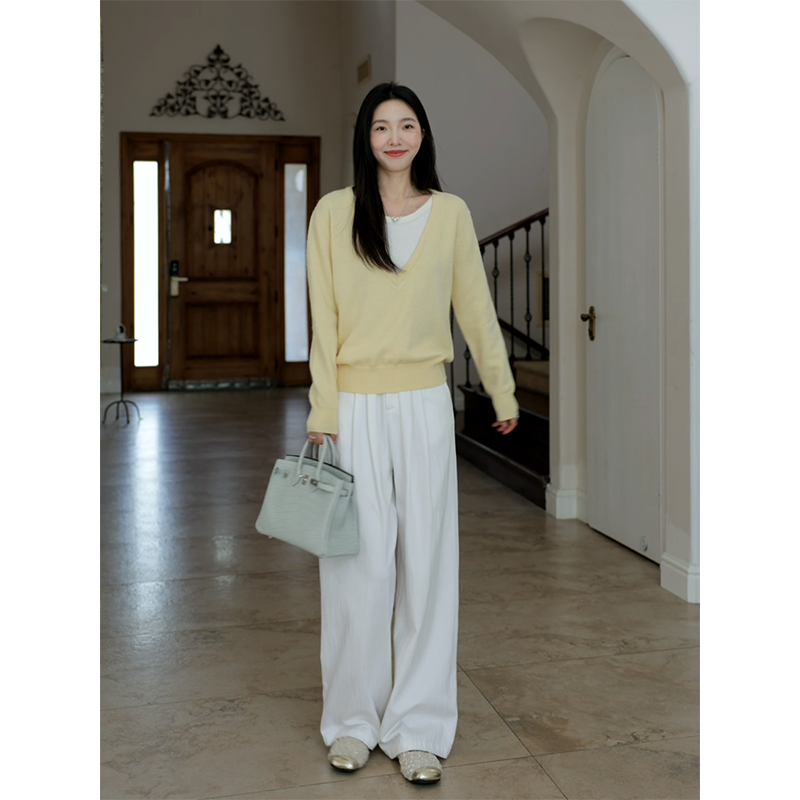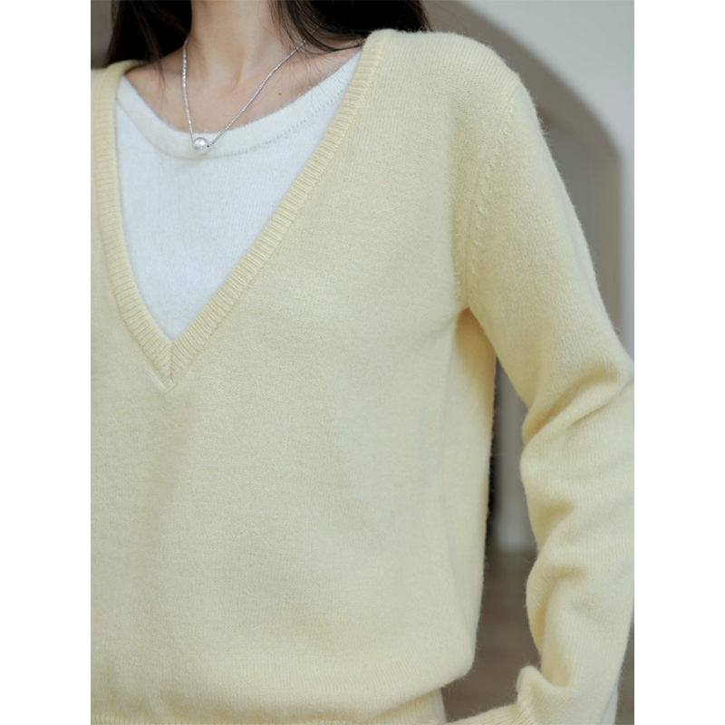 郭九九呢 棉温柔风简约假两件撞色宽松毛衣简约上衣秋牛仔阔腿裤
