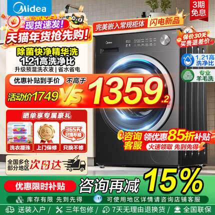 美的10KG精华洗滚筒洗衣机全自动家用洗脱洗烘一体大容量官方旗舰