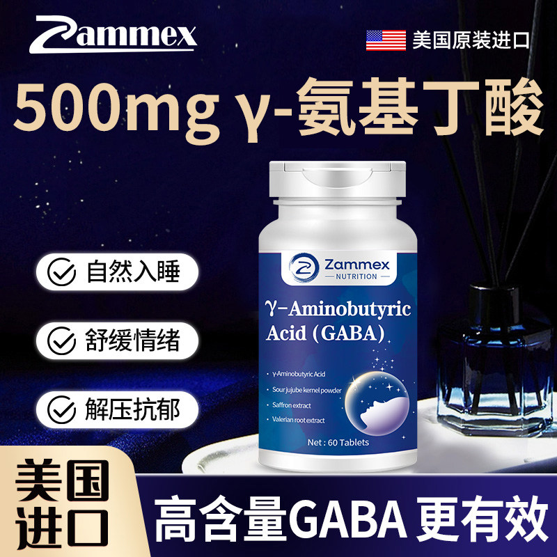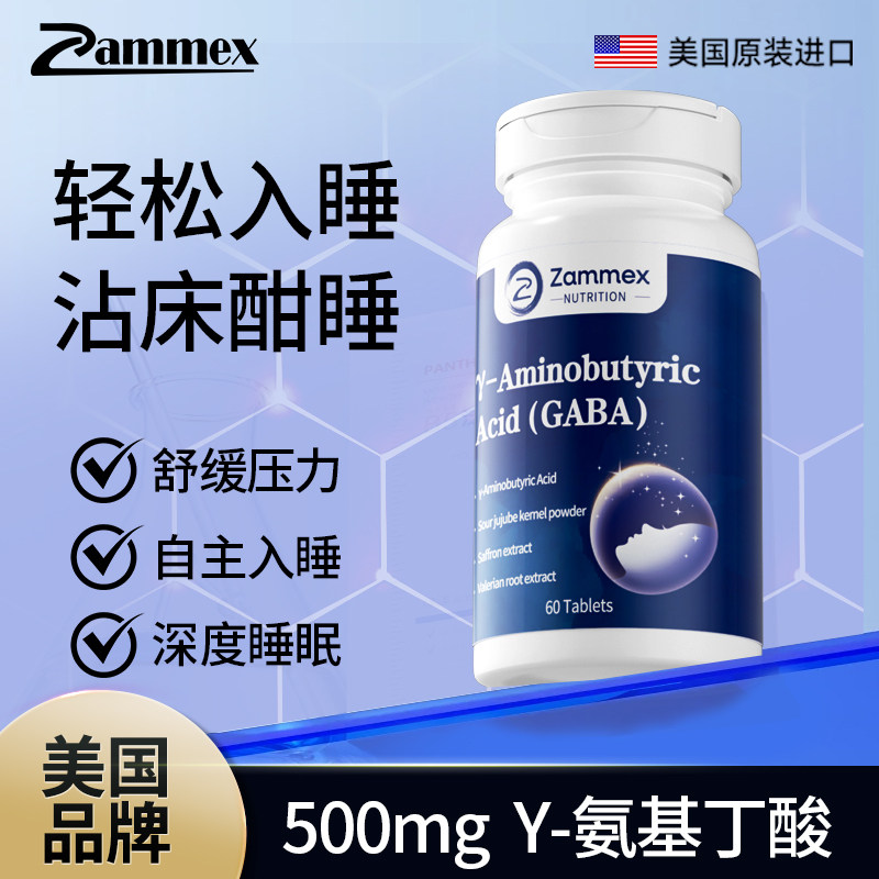 Zammex美国进口gaba氨基丁酸褪黑素藏红花酸枣仁安瓶提升睡眠片