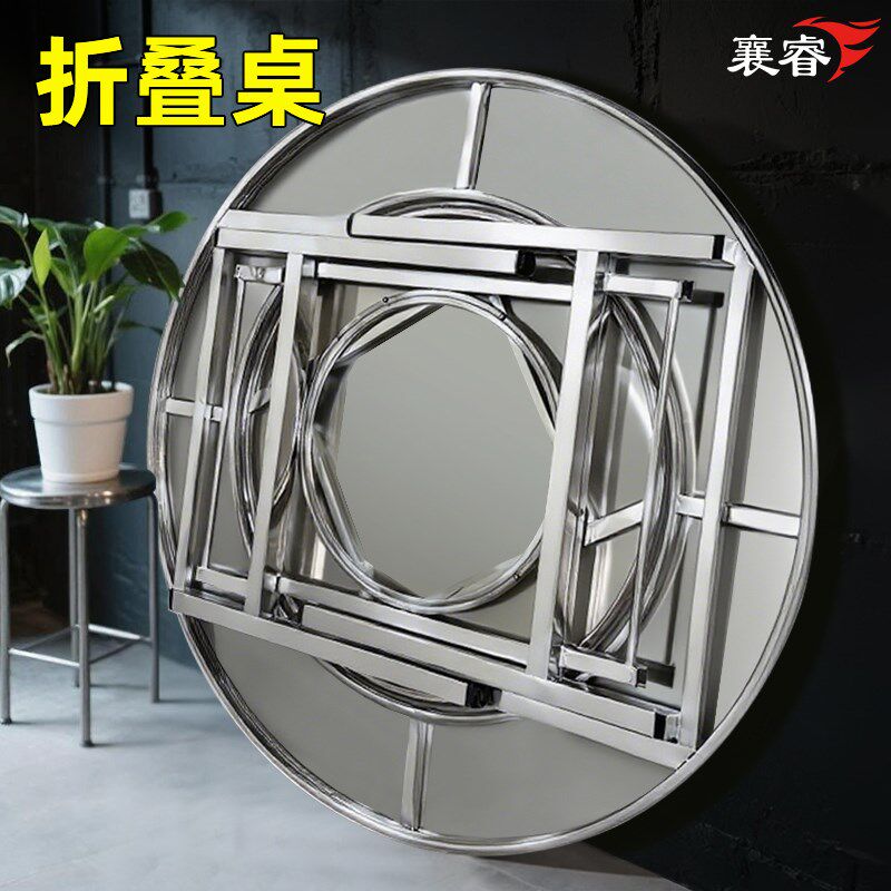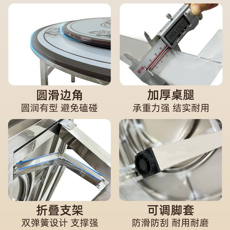 折叠餐桌圆桌家用10人不锈钢桌子带转盘可携式小户型出租房吃饭桌