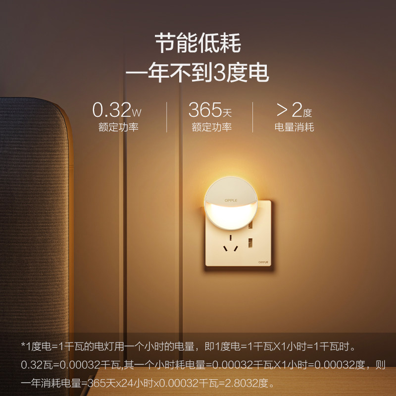 欧普感应led小夜灯usb充电床头母婴夜光灯过道卧室台灯应急灯礼物