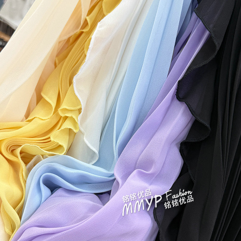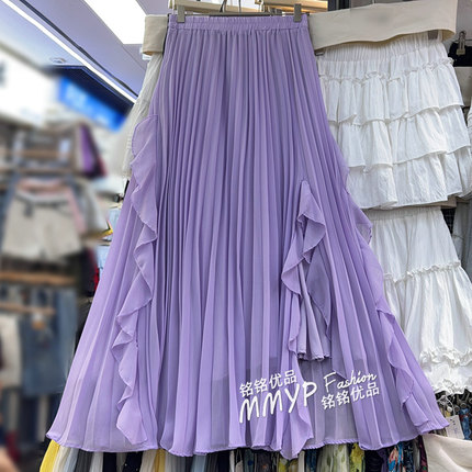 夏季冷淡系高级感荷叶边开叉紫色雪纺半身裙女2025新款百褶长裙子