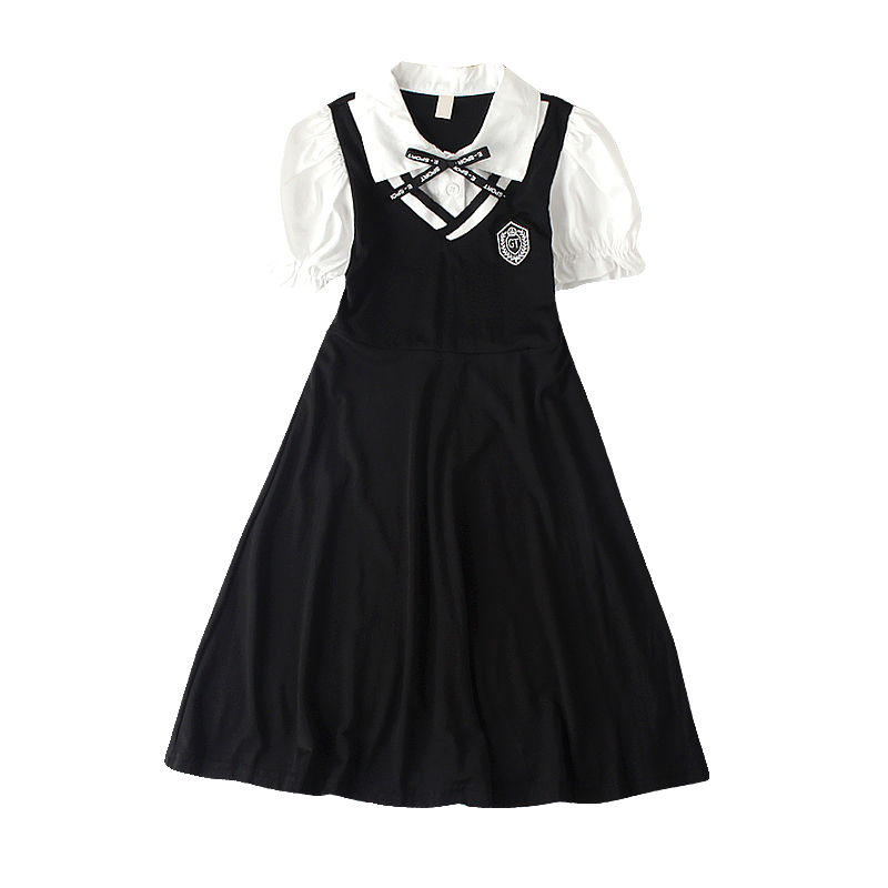 女童夏装连衣裙儿童洋气学院风表演班服夏季中大童女孩假两件裙子