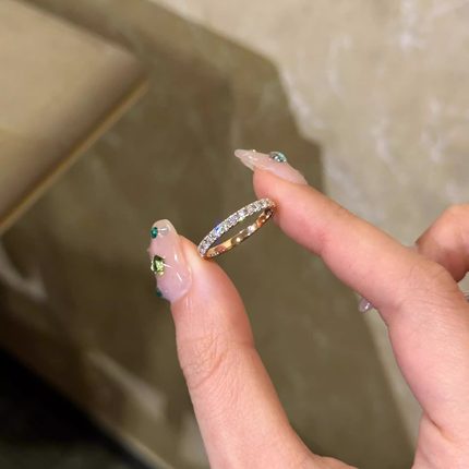钛钢不掉色镀18K金排钻戒指高级感轻奢时尚百搭素圈食指戒尾戒