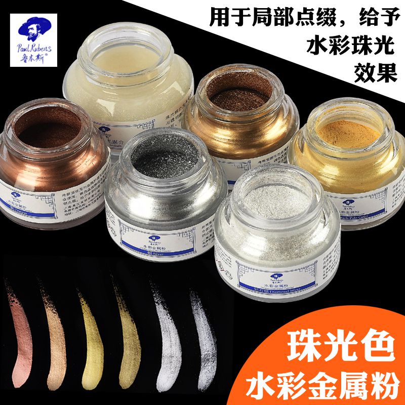 鲁本斯水彩颜料专用金粉闪粉固体彩色金属色粉金色银色金银粉珠光色国画绘画点缀描金水粉分装媒介剂白色墨水