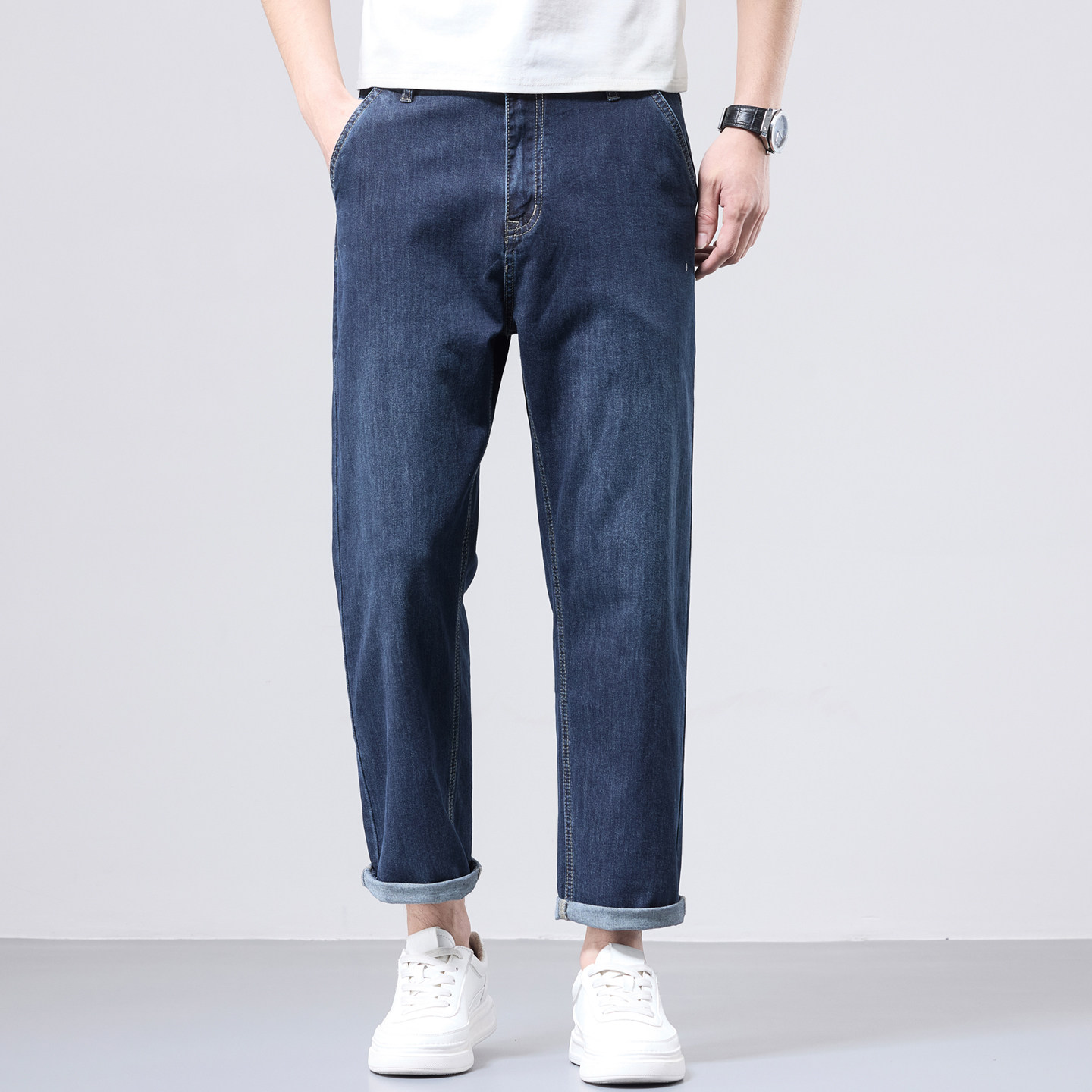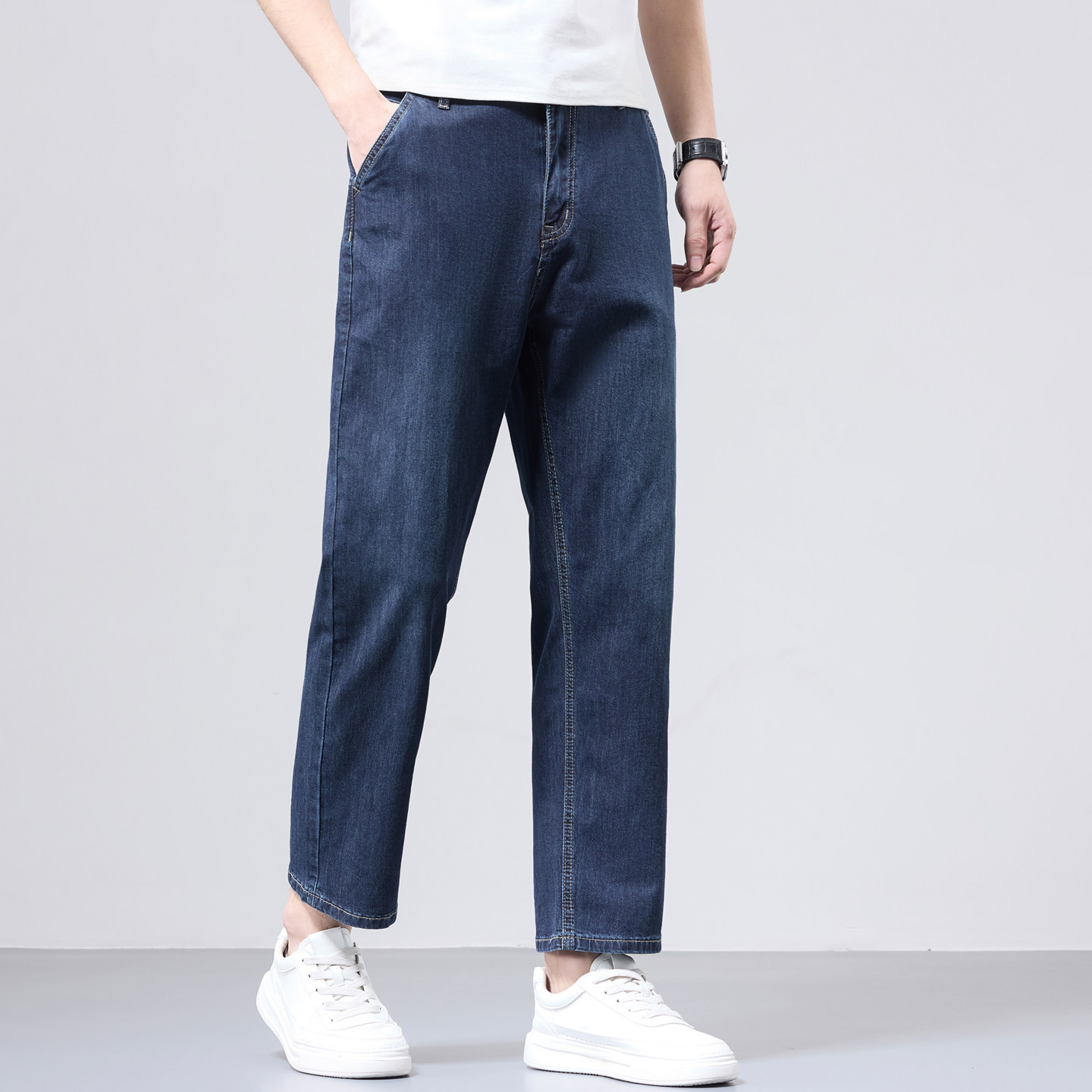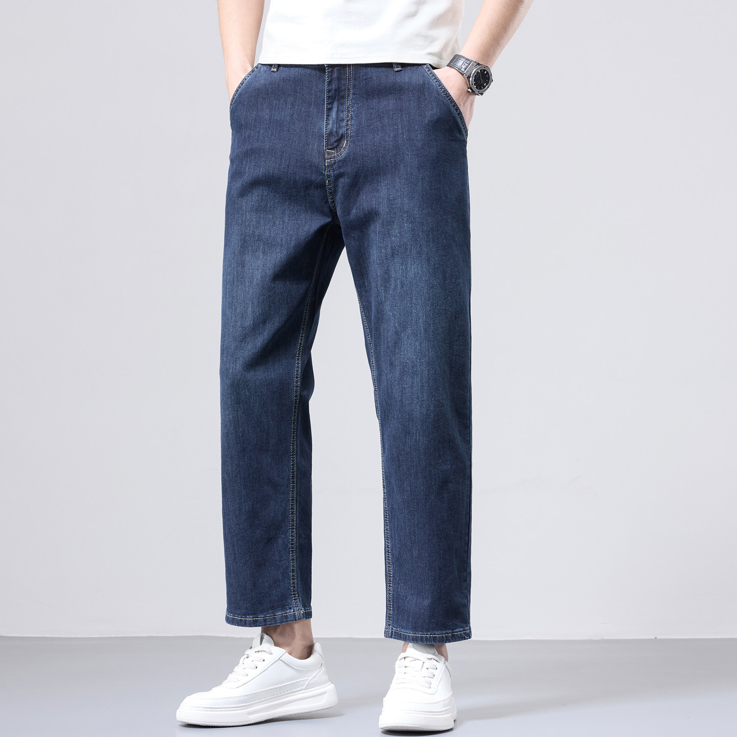 高端九分牛仔裤男士春季宽松直筒9分男裤中年小个子9分长裤男