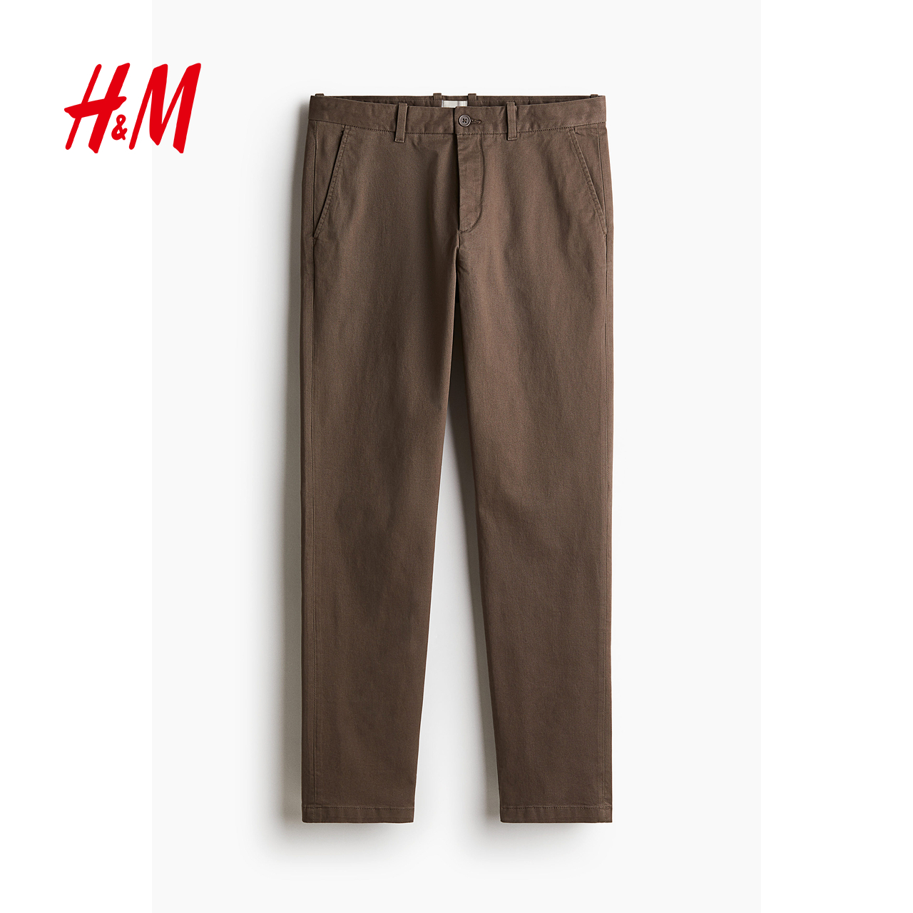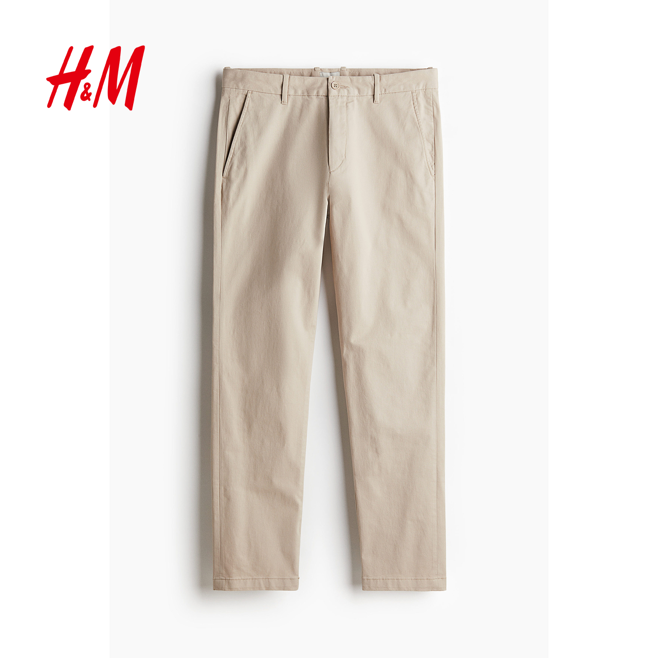 HM男装休闲裤秋季合身版弹力斜纹棉质通勤商务时尚长裤1234995