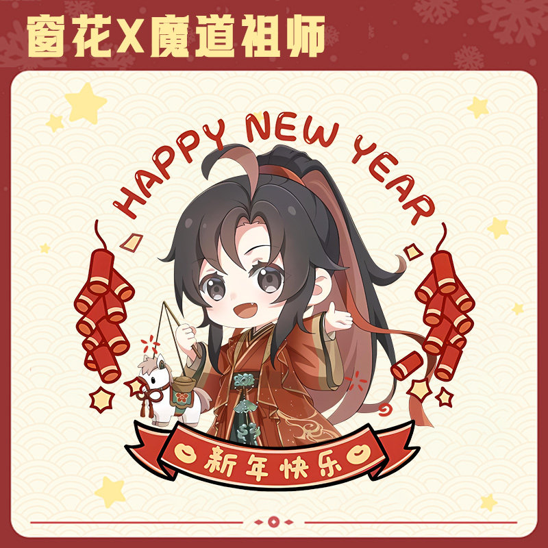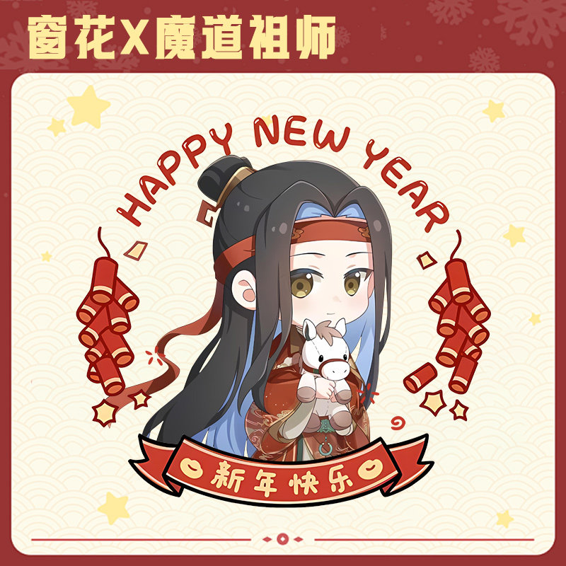 魔道祖师同人窗花新年马年过年玻璃贴纸门窗静电贴一对LN