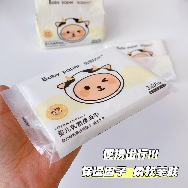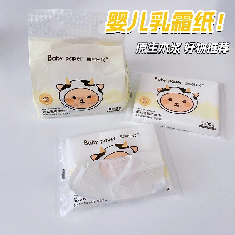 宝宝时代婴儿乳霜纸巾3层30抽保湿乳液纸母婴可用温和乳霜纸3