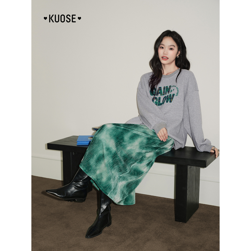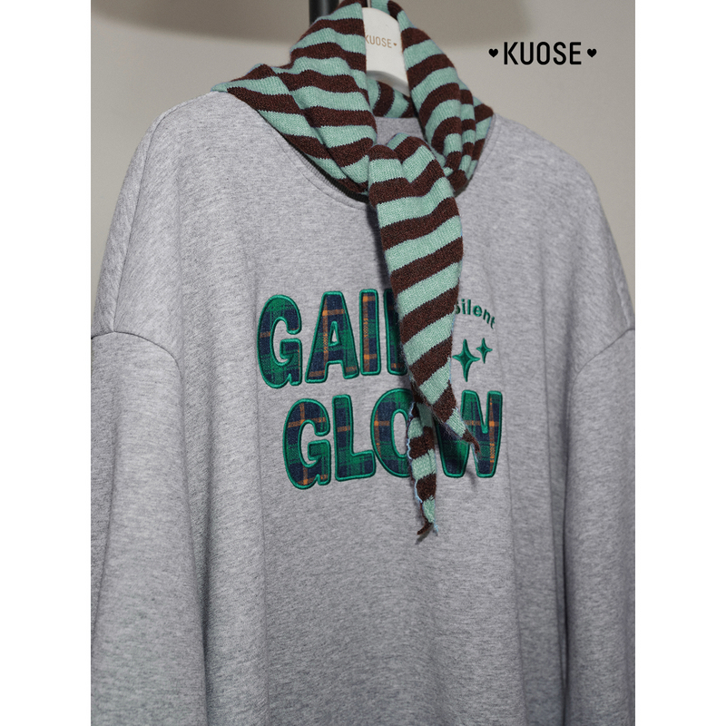 阔色灰色刺绣宽松显瘦加绒卫衣女2025秋冬季新款慵懒长袖套头上衣