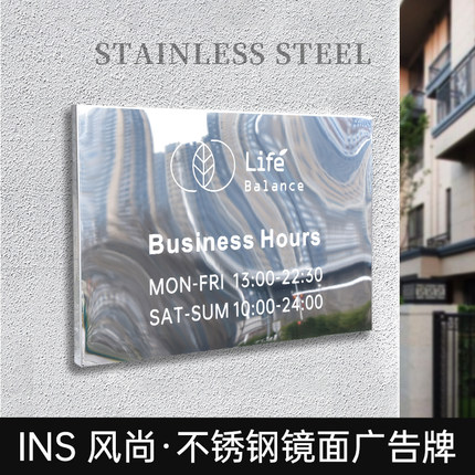 不锈钢镜面招牌广告展示牌个性创意店铺公司logo门头牌匾定制设计