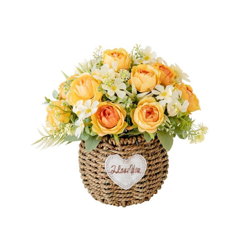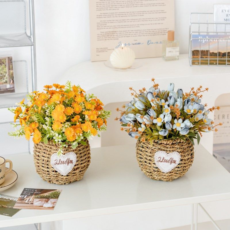假花仿真花摆设客厅草编花篮花束仿生花仿真郁金香花艺插花摆件